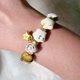 ・様々な手首のサイズにフィットするよう、丈夫な伸縮性のある糸で繋がれた金メッキの金具がセットされています。