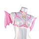 取り外し可能な翼、五芒星、ハートの装飾が付いた伸縮性のあるハーネス。サテン仕上げの伸縮性ストラップで作られています。完璧なフィット感に調整可能です。