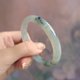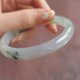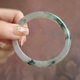 ・「氷」のような質感があるため、結晶質の綿状の模様(クラックや内包物)が見られますが、通常の社交距離では全く気にならず、触っても引っかかりやざらつきは一切ありません。ほとんど完璧なバングルと言えるでしょう。結晶質の綿状の模様がある箇所はほとんど見当たらず、この価格では絶対にお買い得です。価値を理解する方にはぜひ手に入れていただきたい逸品です!