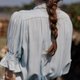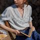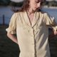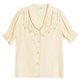 スズラン刺繡ショールカラーパフスリーブシャツ