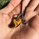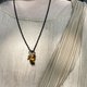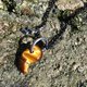 - タイガーアイフックジェードカット、ペーパーペンダントとブラックスチールネックレス、特別で目を引くモデル。