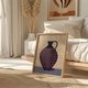 - 濃い青色の陶器の鉢に鮮やかなレッド点々が飾られ、丸い陶器の壺がパープルのテーブルの上に静かに佇んでいます。絵は濃厚な色彩のブロックと、シンプルながらもリズミカルな構図が特徴です。遊び心と緊張感あふれるフォルムが調和した、モダンな静物画です。キッチン、レストラン、エントランスなど、どんな空間にも置くことができ、生活に遊び心とアートの息吹を吹き込んでくれます。