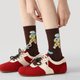 「豹豹狗狗」シリーズのデザインファンタジー:「豹豹狗狗」は、動物をインスピレーションにしたユニークな靴下シリーズで、野生の豹の模様とかわいらしいペットの要素を巧みに融合させ、個性あふれる温かみのある日常アイテムを生み出しています。3足の靴下は、それぞれ異なるスタイルの動物を描き出し、遊び心あふれるデザインで動物ファンのコレクション欲を満たすだけでなく、多様なデザイン言語を通じて「生き物と共存する」温かみのある理念を伝え、足元をミニチュアの動物園へと変えていきます。
