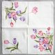 - 女性のためのビンテージスタイルのハンカチ上質な綿生地で作られており、ホワイト背景にピンクとパープルのチューリップが美しい花柄です。