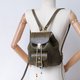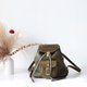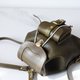 - バケツ型バッグをリュックサックスタイルにアレンジしたこちらは、カラフルな小さな丸いビーズをあしらったドローストリングデザインが、ひときわ魅力的な雰囲気を醸し出しています。 バッグ全体には硬質な植物タンニンなめし革を使用。ひっくり返すことを考慮し、本体の牛革は特別に軟化処理を施しました。これにより、柔らかい植物タンニンなめし革を直接使うよりも靭性が増し、ひっくり返しにくさを解消しつつ、全体的にしっかりとした形状を長く保つことができます。