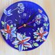 ガラス時計-あなたの家のためのユニークな壁の装飾。花のある壁掛け時計は、融着技術を使ったステンドグラスで作られています。