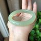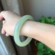 それは直接的な鮮やかさではなく、どこか淡いブルーの色合いを帯びています。まるで初春に溶け始めた湖水、あるいは薄霧がまだ残る晴れやかな空のよう。温かさの中に霊妙さが透け、柔らかさの中に透明感が隠されています。玉質は凝脂のようにきめ細かく、光沢はちょうど良い油分を含んだような質感。身につけた時、そのひんやりとした感触が肌に寄り添い、まるで晴れやかな一日を腕に纏っているかのようです。華美ではないけれど、それ自体が持つ静かな癒しの力があり、ひと目見ると、心まで落ち着いていきます。