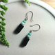 - 台湾の翡翠彫刻ブランド【玉凝飾】—人文、洗練されたデザインと翡翠彫刻の技が織りなす、天然玉石のユニークな日常アクセサリー。純銀製デザインピアス 素材:ターコイズ+青海碧玉+ブラックオニキス+925シルバー(ピアスフック)