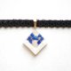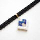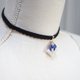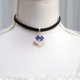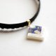 透明のレジンにホワイトシェルとラピスラズリのさざれを沈め、光沢のあるホワイトで囲ったレジンを、ベルベットリボンにタティングレースで装飾を施したチョーカーに仕上げました。