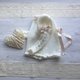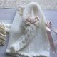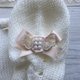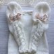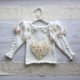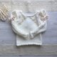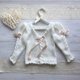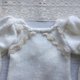 女の赤ちゃん用のニットセーター。レース、パール、リボンをあしらったセーター。サイズや色、ご希望に合わせてオーダーメイドでお作りいたします。
