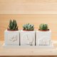 - シンプルなクリアウォーターモールドスタイルの多肉植物セメント鉢植え4点セット。4つのデザインから3つを選択し、特別なセメントシャーシを追加して、独自の質感のある多肉植物の庭を簡単に作成できます。 5cm立方体のセメント鉢植えには、1インチの多肉植物が付属しています。ベースはディフューザー石としても使用でき、お気に入りの香りを加えることもできます。オフィスに置くと気分が癒され、オフィスにも最適です。贈り物に!
