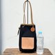 - コンパクトな縦長に、ニコッと笑ったような口のレザーポケットの巾着バッグ。 お財布にスマートフォン、キーケースなどお出かけに最低限の荷物が収まります。