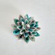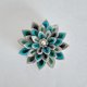 サンドベージュで縁取った4色のグリーン系統の花びらを重ねて作ったつまみ細工のブローチです。