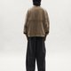 襟元と袖口の縫い目は切りっぱなし処理を施しており、ウォッシュ加工後に自然な不規則なシワとロールエッジが生まれ、全体的なヴィンテージ感を演出します。さらに、スノーフレーク加工のローリング摩擦と薬剤処理を組み合わせることで、ボディにランダムな白い斑点模様が形成され、唯一無二のスノーフレーク効果を生み出し、衣服の柔らかさと着用感を一層高めています。