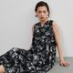 シックでカジュアルなモノトーンフラワープリント・ノースリーブ・ワンピース