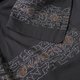 落ち着いた黒地に、袖や裾に施されたさりげない意匠が、静かで洗練された印象を与えます。