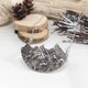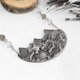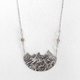 この「バンクーバーの風景」ペンダントネックレスは、レティキュレートシルバーの層を重ねて装飾的な表情を演出し、その下にはテクスチャーを施したスターリングシルバーの層を配してコントラストを際立たせました。両サイドにはクリアクォーツとスモーキークォーツのビーズがあしらわれ、スターリングシルバーチェーンへと繋がります。