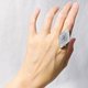 **1.写真のブルー・ムーンストーンのリング表面全体の長さは約40mm、幅21mm、厚さ9mm、リングの内径は約17mmで、フリーサイズで調整可能です。**