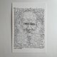 ロシアの文豪、レフ・トルストイ(1828 – 1910)の『戦争と平和』冒頭部分(フランス語およびロシア語)を手書きしながら彼の肖像を描きました。