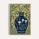 イラストレーターのララスによる「グリーン・ベース・ガーデン」は、濃い青と緑のコントラストを強め、植物と器が織りなす静謐な雰囲気を表現しています。ボトルに埋め込まれた花と植物のトーテム的な線は、背景の葉と共鳴し、東洋の禅と自然との対話を現代的なイラストで表現しています。