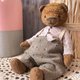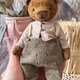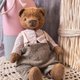 高さ15cm。おがくずを詰めたビスコースクマ。金属顆粒で加重。黒いガラスの目。彼は一人で座っています。彼は我慢できない。綿の衣類は脱ぐことができます。淡いパステル調。美しいパッケージで届きます。