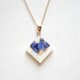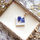 透明のレジンにホワイトシェルと鮮やかなコバルトブルーに着色されたシェルを沈め、光沢のあるホワイトで囲ったペンダント。