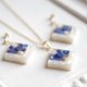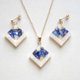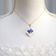 - レジンでスクエアペンダントを作りました♪ 透明のレジンにホワイトシェルと鮮やかなコバルトブルーに着色されたシェルを沈め、光沢のあるホワイトで囲ったペンダント。 シェルと一緒に沈めた金箔がキラキラと輝く様子が華やかです。
