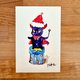 - 「クリスマスが訪れ、宇宙のキャラクターたちがあなたを冒険へと誘います。きらめく夜に、それぞれの笑顔は少しいたずらっぽく、愛らしい輝きを放ちます。」🖤✨ 手描きの温もりと個性が光るクリスマスカードです。