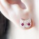 - 宝石の目と、毛をした猫のスタッドピアス。