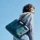 手持ちだけでなく、取り外し可能なショルダーストラップを使えば、ショルダーバッグやクロスボディバッグとしても活躍。海洋プラスチックをリサイクルした撥水素材を使用しており、ノートPCを守ると同時に地球環境にも配慮しています。
