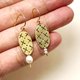 - **数量限定作品** • 素材:真鍮、パール、14KGFゴールドフィルドピアス • ピアスサイズ(ピアス含む):11 x 34 mm • 表面加工:マットブロンズカラー