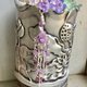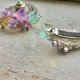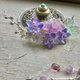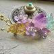 主な素材:鋳造アクセサリーブロンズ、鉄スプリングクリップ、ナチュラルパープルクリスタル、ガラスパーツ。