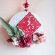 - 刺繍フレームをベースに、赤い切り絵風の「福」の文字を組み合わせた、 おめでたいデザインのリースです。