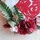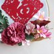 下部には、上質なフェイクの深みのあるワインレッドとピンクの花々を重ね、