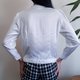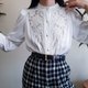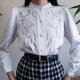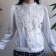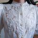 ヴィンテージホワイトブラウス、ポリエステルとシルクのカットワークブラウス、パフスリーブとハイネックがロマンチックなホワイトブラウス。