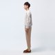 こだわりのディティールデザイン、肩幅を少し落としたドロップショルダー、胸元のVカットと袖口のリブ、デコルテが崩れないように補強・固定した、秋冬に活躍するベーシックなカレッジTです。ほぐれやすく、ストレートな質感が持続します。