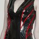 フロントの個性的な切り替えとクリエイティブなパイピングデザインが、セクシーなボディラインを美しく引き立てます