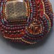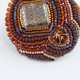 小さな作品を作るとき、まずメインのビーズを選びます。 そのビーズがいちばん美しく見えるように、隙間なく刺繍を重ねていくと── 色とりどりのビーズたちが、まるでおしゃべりしているような、にぎやかな仕上がりになります。