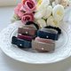 韓国から輸入した型(約4.5cm×3cm)を使用し、韓国から輸入した無地の布と人工皮革のウェビングで作られたリボンを組み合わせ、リボンに小さなダイヤモンドを飾り、シンプルに仕上げました。そして合わせやすい。