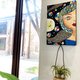 絵の中にはトーテム的な表現が多く、少女は宇宙のエネルギーに包まれています。長い川のような帯は宇宙の天の川のようであり、月明かりの下で星を反射する夜の川のようであり、シルバーの惑星は明るい月であり、暗い宇宙の全世界を照らし、伝えます。愛に満ちて、点在する色とりどりの小さな惑星は家族や友人のように、私たちのそばで静かに待っています。