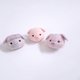 - ぶたちゃんの羊毛フェルトブローチ。一匹一匹違う表情、花柄のぶたちゃんには前髪も。